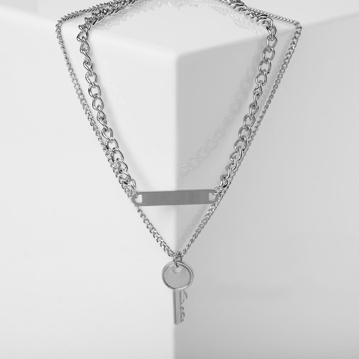 Элегантное многослойное украшение длиной 42 см сочетает в себе изысканность серебристого цвета и оригинальность подвески в виде ключа. Эта цепочка с двумя ярусами станет стильным акцентом в образе современной женщины, подчеркивая её индивидуальность и тонкий вкус.