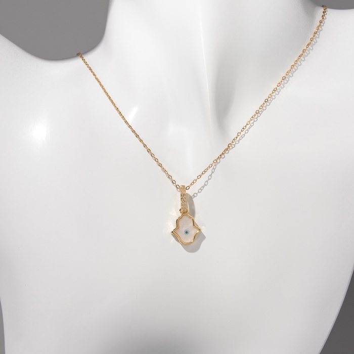 Кулон на цепочке оберег «Мини», рука хамса, бело-голубой в серебре, 38 см