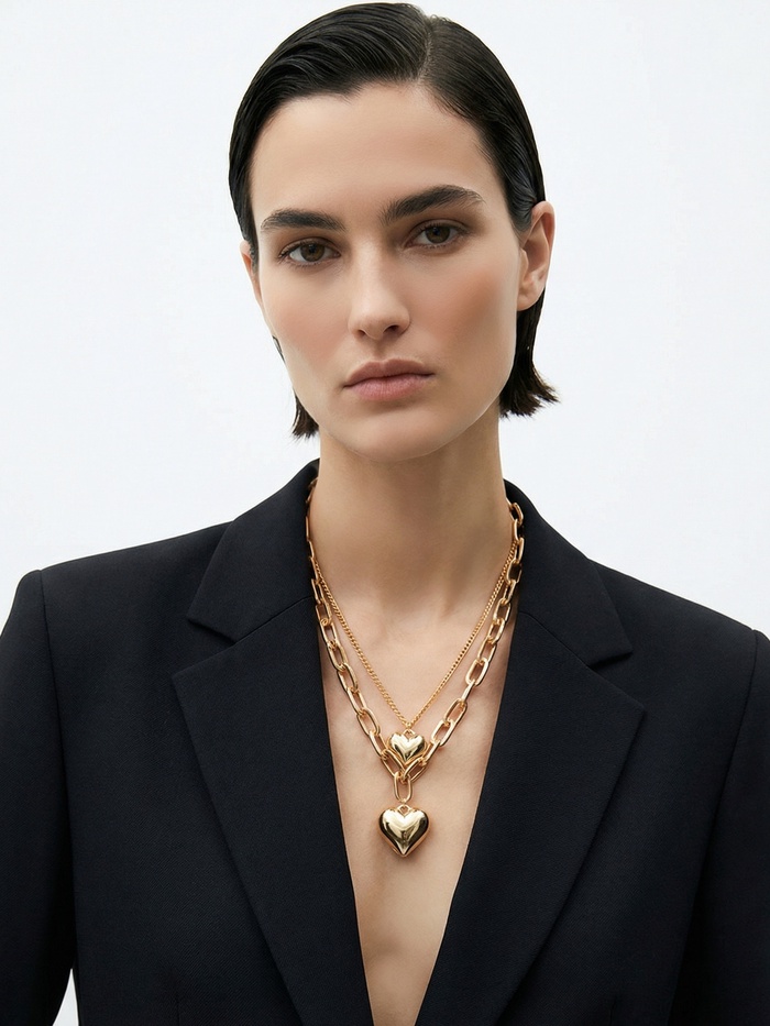 Кулон на цепочке «Сердечки», 2 яруса, цвет золото