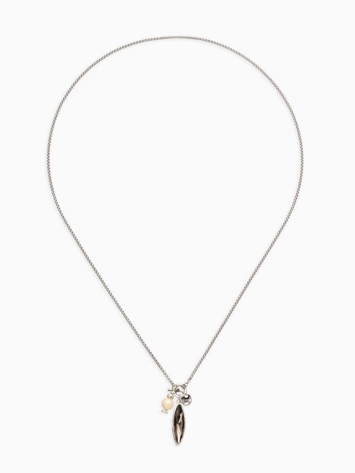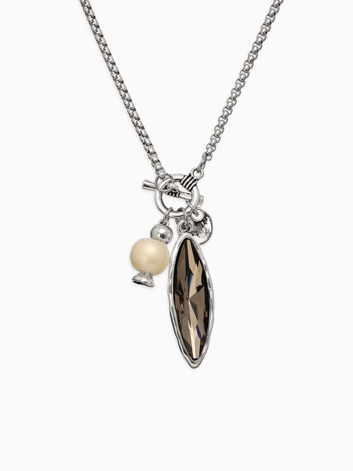 Центральным элементом украшения выступает полупрозрачное стеклянное ядро насыщенного серого цвета, которое кажется наполненным светом изнутри. Светлая цепь идеальной длины 50 см служит превосходным фоном для уникальной подвески, гармонично вплетаясь в общий ансамбль и подчеркивая индивидуальные черты владелицы.