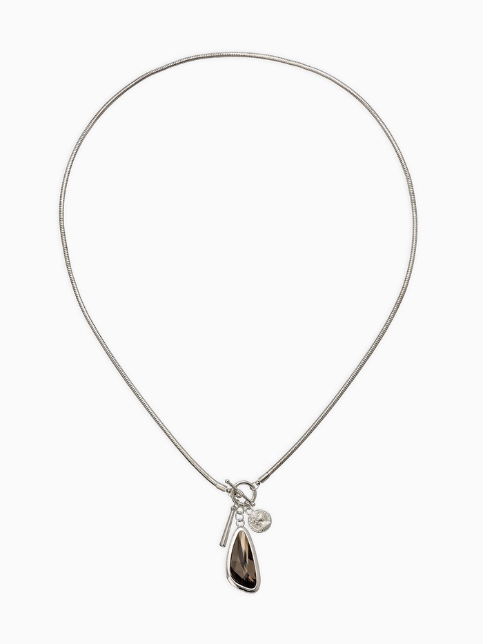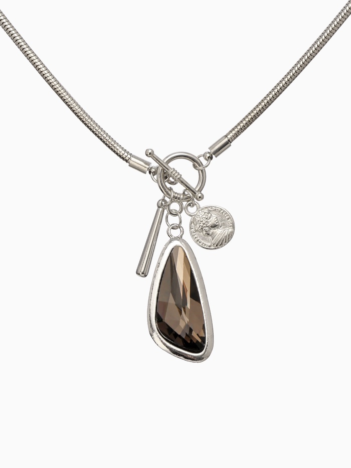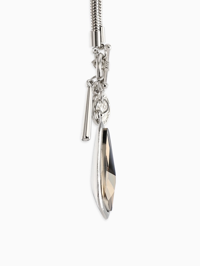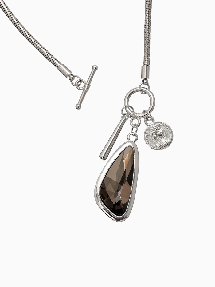 Завораживающе красивый кулон на цепочке приглашает насладиться таинственным миром абстрактного искусства. Выточенное из металла изделие покрывается тонкой пленкой серебра, плавно переходящей в спокойный, приглушённый серый тон стеклянной подвески. Форма капли, заключённая в многослойную композицию, олицетворяет свободу мысли и стремление к нестандартному взгляду на вещи.