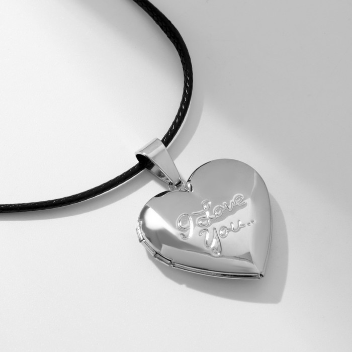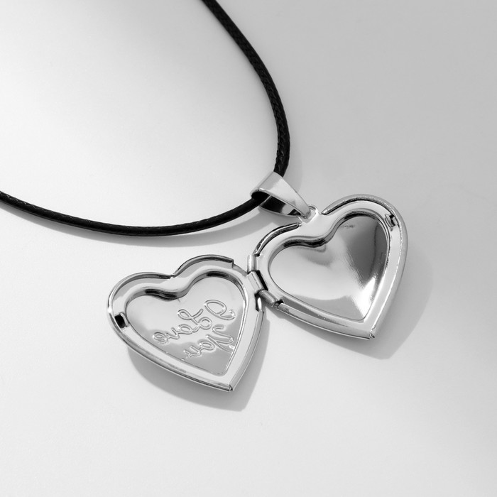 Кулон на шнурке «Для фото» сердце с надписью, цвет серебро на чёрном шнурке, 45 см