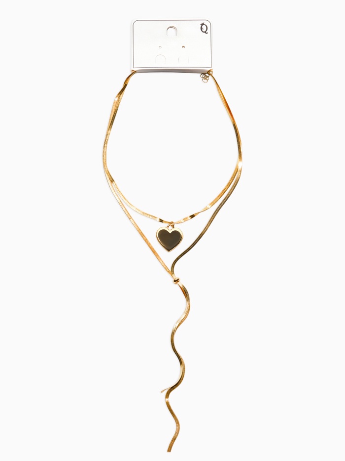Двухярусный кулон цепочка с медальоном в форме сердца золотистого цвета. Этот аксессуар гармонично сочетает в себе лёгкость и прочность, позволяя создавать элегантные и выразительные образы, достойные современного женского гардероба.