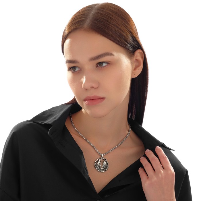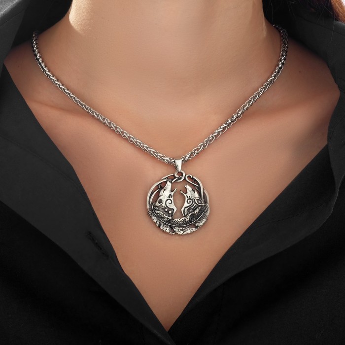 Кулон-оберег «Волки» воют на луну, цвет чернёное серебро, 59см