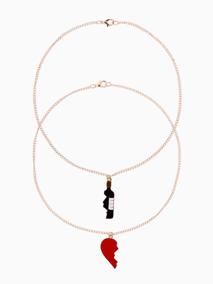 Оформленные в дерзком стиле, кулоны сочетают классические формы сердца с изображением бокала вина, создав удивительный дуэт. Красные и черные оттенки насыщенно играют в свете, передавая эмоции и атмосферу вечернего свидания или романтического ужина.
