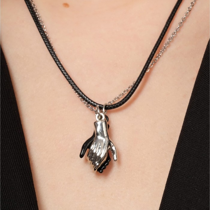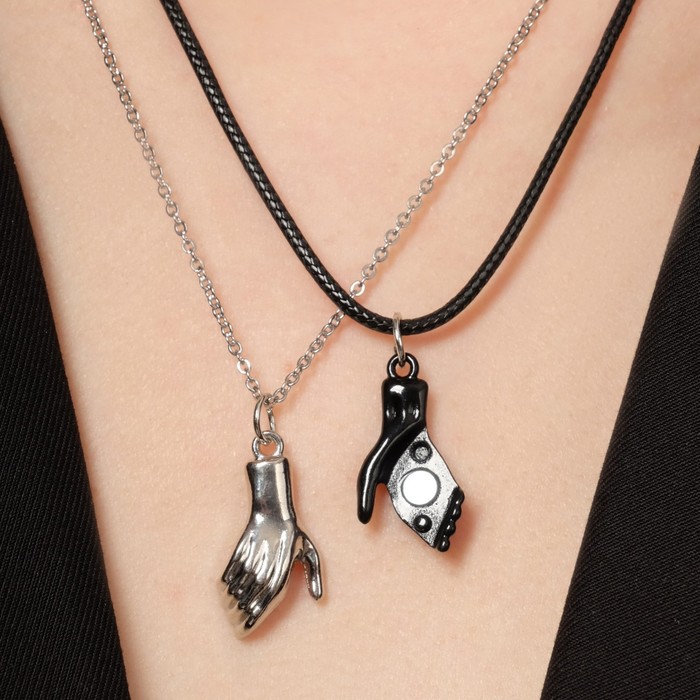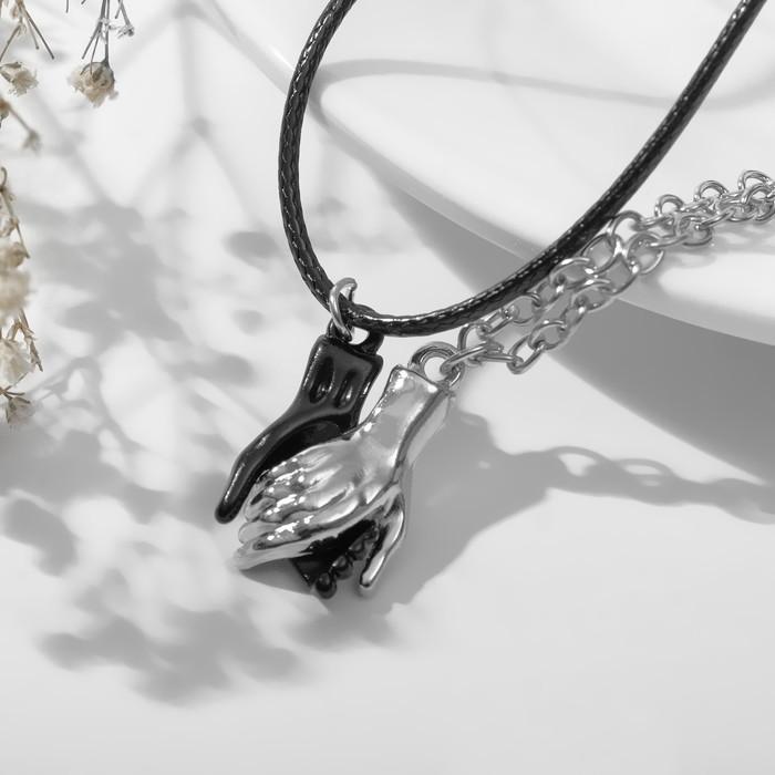 Кулоны парные «Прикосновение», на магните, 52 см, цвет чёрный/серебряный
