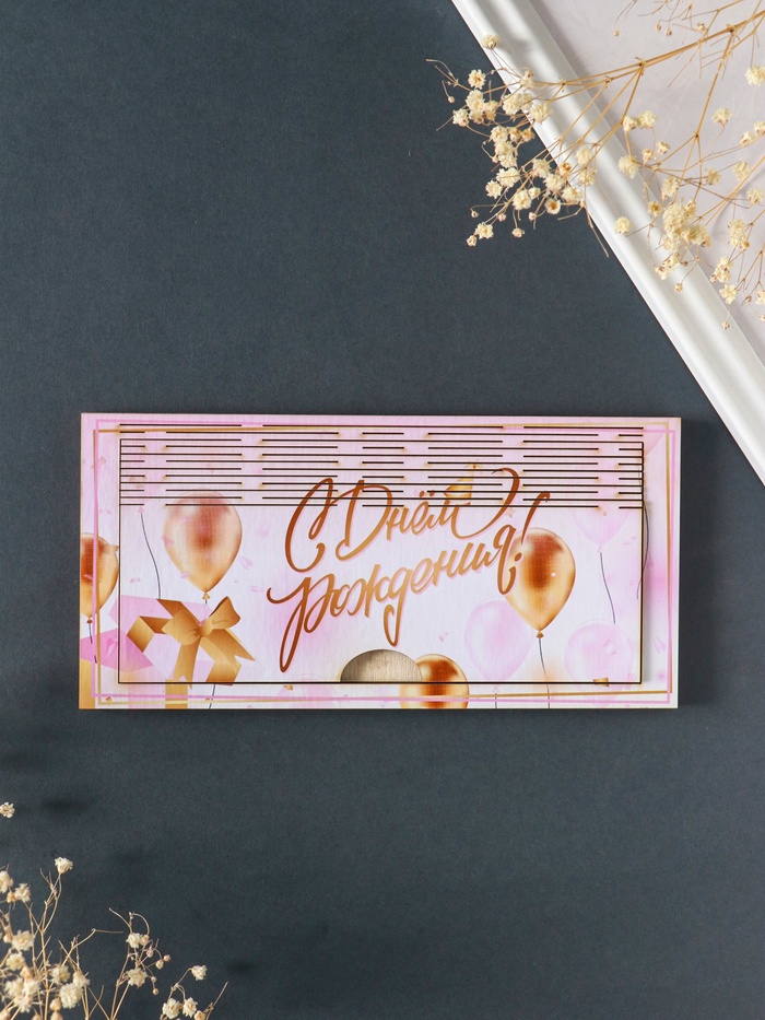 Купюрница подарочная, открытка «С Днём Рождения», шкатулка для денег, карточек, сертификатов, розовый