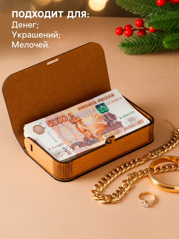 Эта шкатулка преобразит вашу новогоднюю атмосферу, добавив в неё ноту элегантности и заботы. Вы легко создадите особое настроение, подарив её близким. Вместо стандартного конверта для денег, ваш подарок обретёт форму, отражающую внимание и любовь.