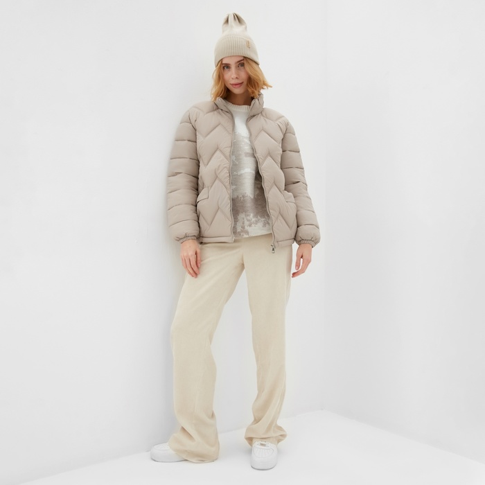 Куртка женская демисезонная на молнии Collorista, серо-бежевая, размер 46