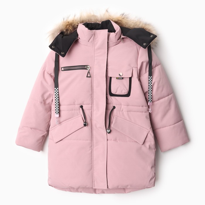 - Съёмный капюшон со шнурком, застёжкой на кнопках и меховой опушкой из натурального меха енота.
