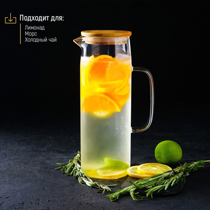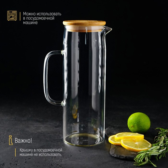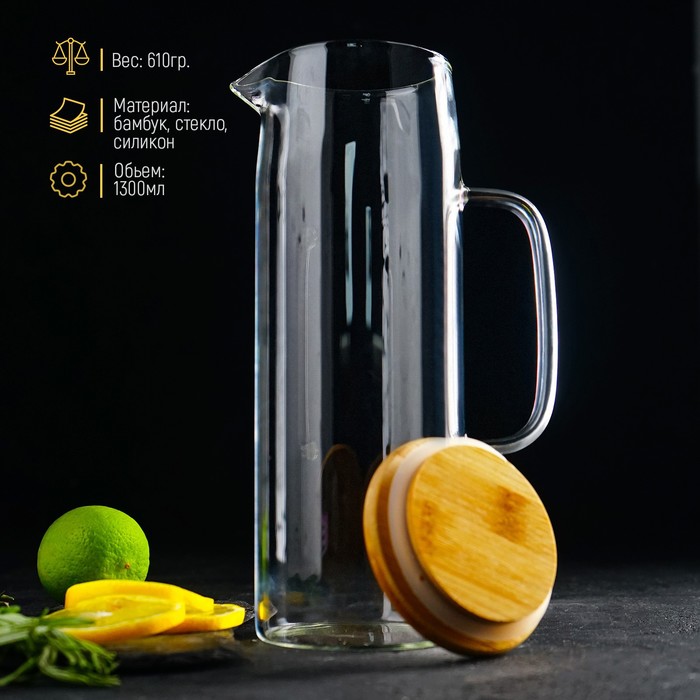 Кувшин Magistro «Эко» изготовлен из экологически безопасных материалов: стекла, бамбука и силикона. Этот предмет посуды впишется в любой интерьер кухни, так как не имеет деколи и выполнен в классическом стиле.