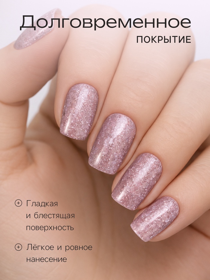 Искрящийся серебристо-коричневый тон этого лака создает потрясающий и глубокий эффект на ногтях. Он добавляет вашему маникюру особую привлекательность и изысканность. Благодаря встроенным искринкам, ваш маникюр будет переливаться и сиять на свету, создавая уникальный и загадочный вид.