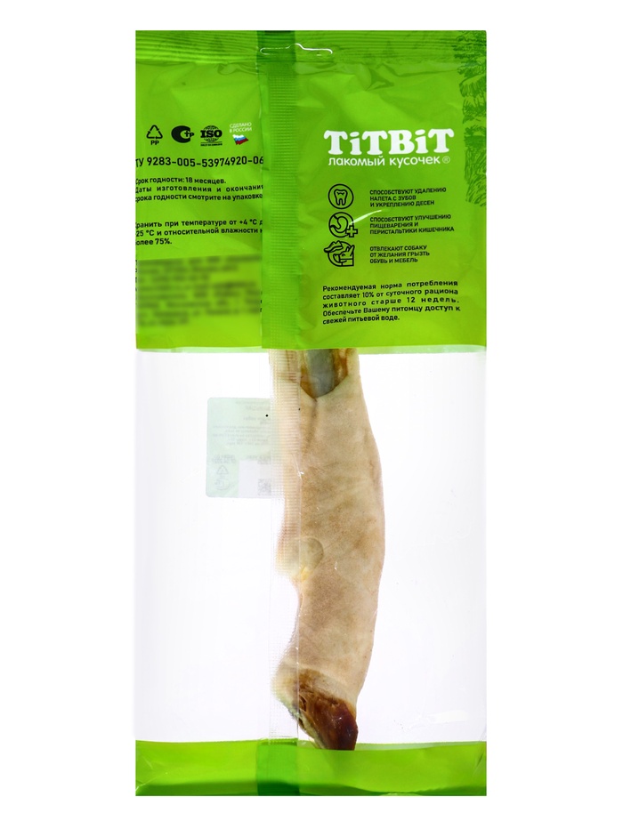Содержит высушенную баранью ногу. Гипоаллергенный белок, высокое содержание хрящевой и соединительной ткани. Изделие содержит кожу, много кости, жира, коллагеновой и соединительной ткани, а также прослойки мышечной ткани. Массирует десны и укрепляет жевательную мускулатуру, очищает зубной налет и предотвращает возникновение зубного камня.
