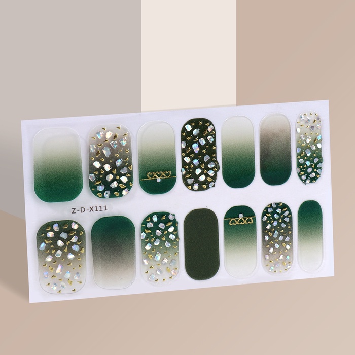 Лаковые полоски для маникюра, 14 шт., зелёные