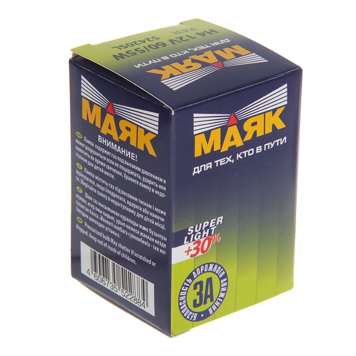 Благодаря длине, цветовым характеристикам и яркости светового луча лампа «Маяк» серии Super Light обеспечивает лучшую видимость по сравнению с аналогами. Полностью подходит для замены приборов завода-производителя. Прочность колбы увеличена за счёт усовершенствованного покрытия.