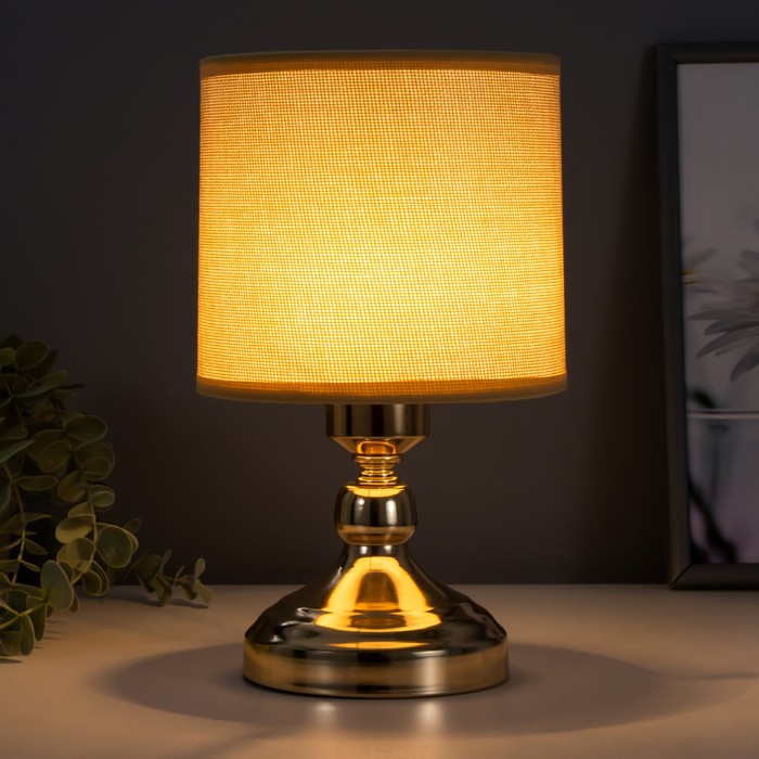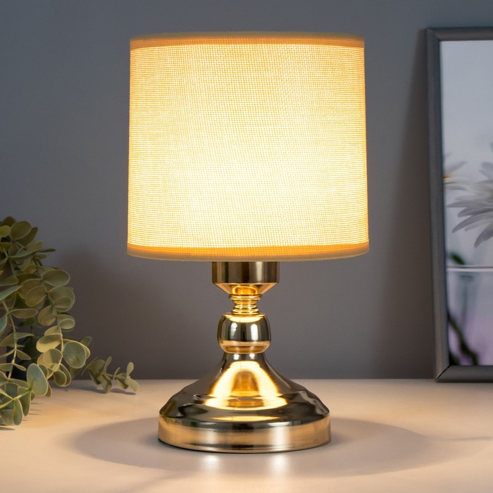 Эта настольная лампа с золотым основанием и текстильным абажуром станет изысканным дополнением вашего интерьера. Высота 28 см и ширина 15 см делают её отличным выбором для размещения на столе или прикроватной тумбочке. Лампа создает мягкий свет, идеально подходящий для чтения или создания уютной атмосферы.