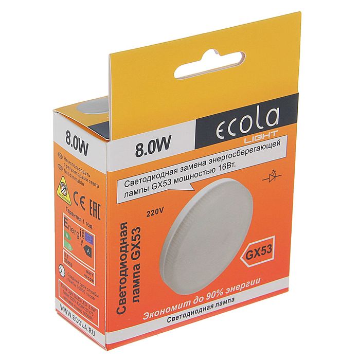 Ультратонкая энергосберегающая лампа Ecola GX53 8 Вт позволит заменить обычную лампу накаливания в осветительных приборах. Она улучшит условия освещения и поможет снизить уровень потребления электроэнергии.
