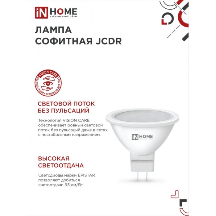 Устаревшие галогенные лампы с цоколем GU5.3 в потолочных и мебельных софитах «съедают» ваш семейный бюджет? Пора заменить их на современные экономичные лампы LED-JCDR-VC, которые не только снизят расходы на электричество в 6 раз, но и сберегут зрение от раздражения, так как созданы по технологии «VISION CARE». Лампы LED-JCDR-VC излучают ровный яркий свет, без пульсации и мерцания, безопасны в быту и обладают значительным рабочим ресурсом (не менее 30 000 часов). Лампа создает естественный дневной свет нейтрального спектра — 4000К