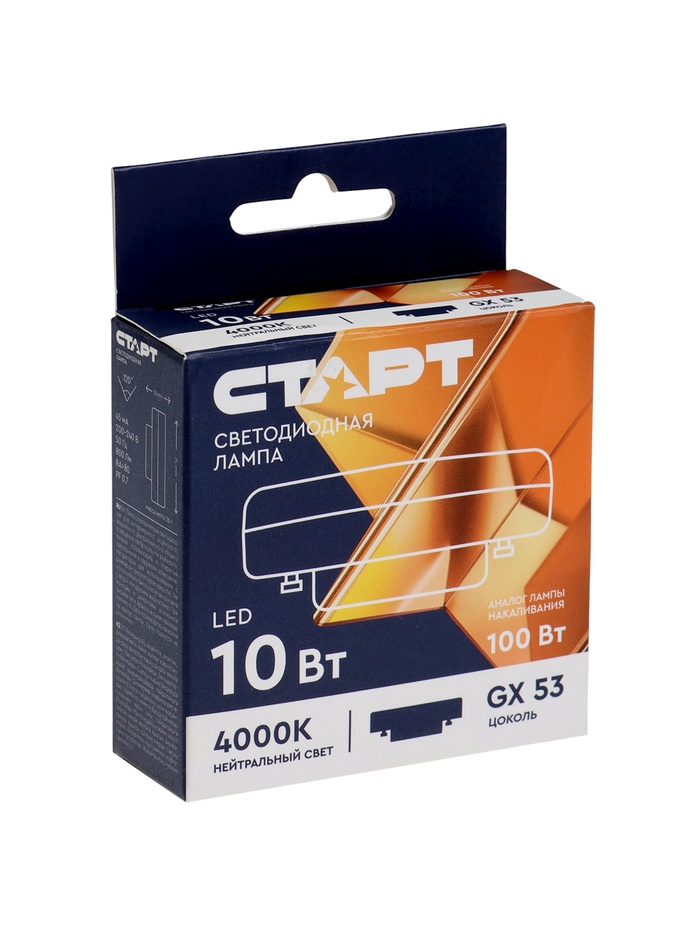 Лампа светодиодная СТАРТ, 10 Вт, GX 53, 4000К, 800 Лм, свечение нейтральное белое