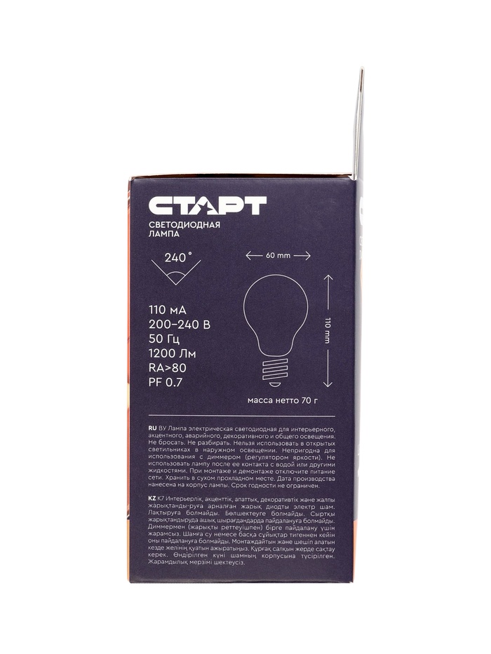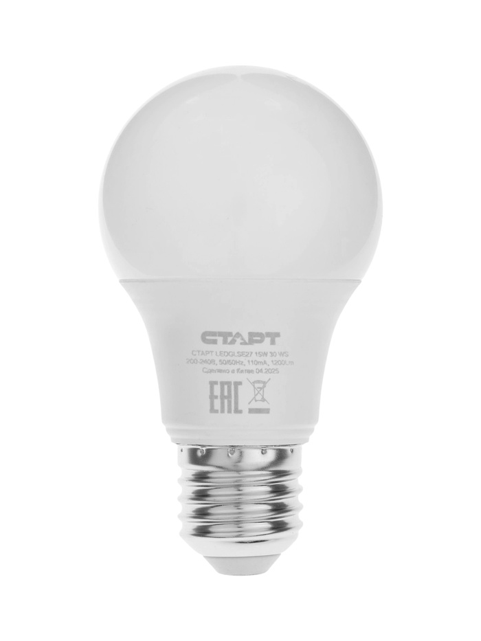 Лампа светодиодная СТАРТ, 15 Вт, Е27, 2700К, 1200 Лм, теплый свет, матовая
