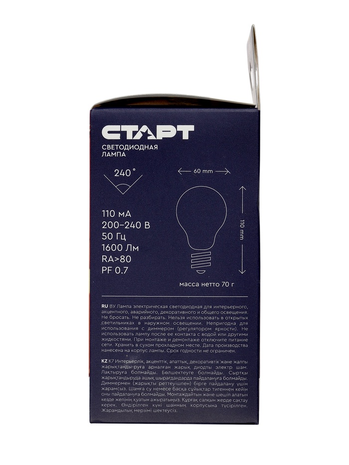 Лампа светодиодная СТАРТ, 20 Вт, Е27, А60, 4000К, 1600 Лм, свечение нейтральное белое