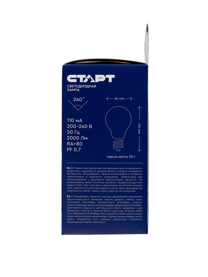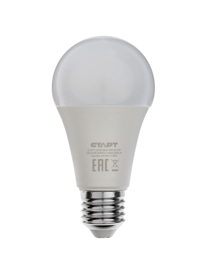 Лампа светодиодная СТАРТ, 25 Вт, Е27, А60, 6500К, 2000 Лм, свечение холодное белое