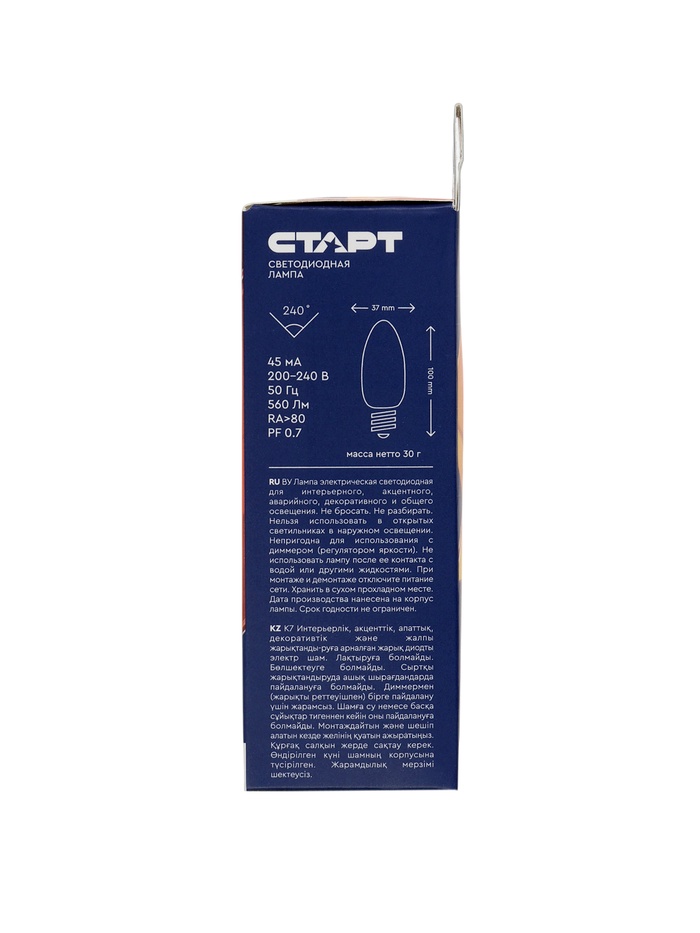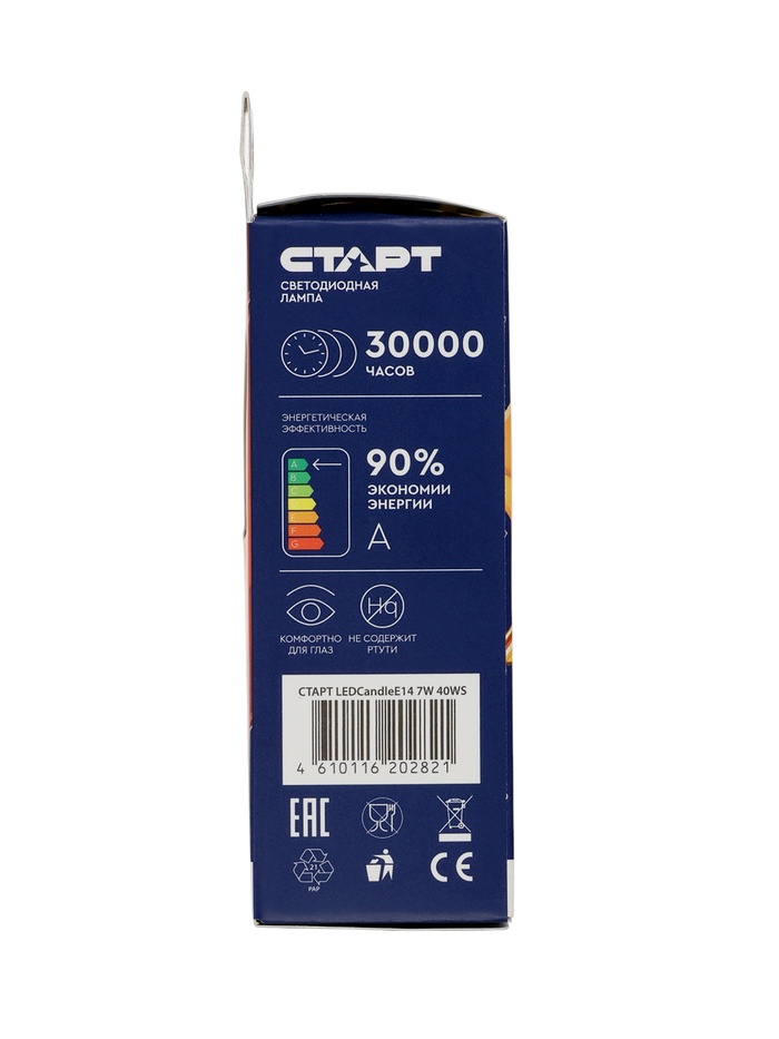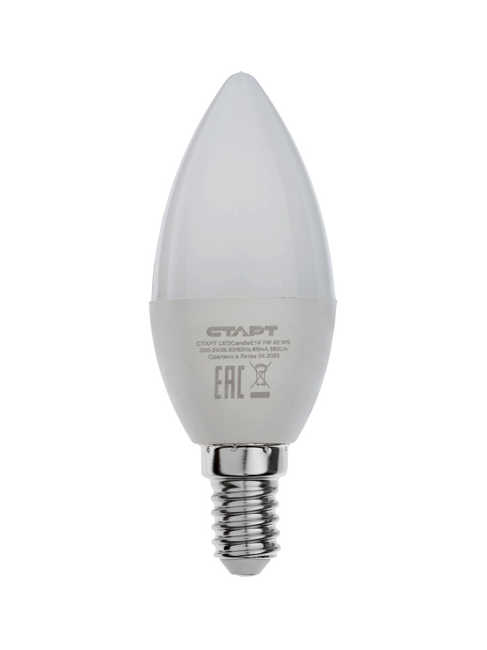 Лампа светодиодная СТАРТ, 7 Вт, Е14, С37, 4000К, 560 Лм, свечение нейтральное белое