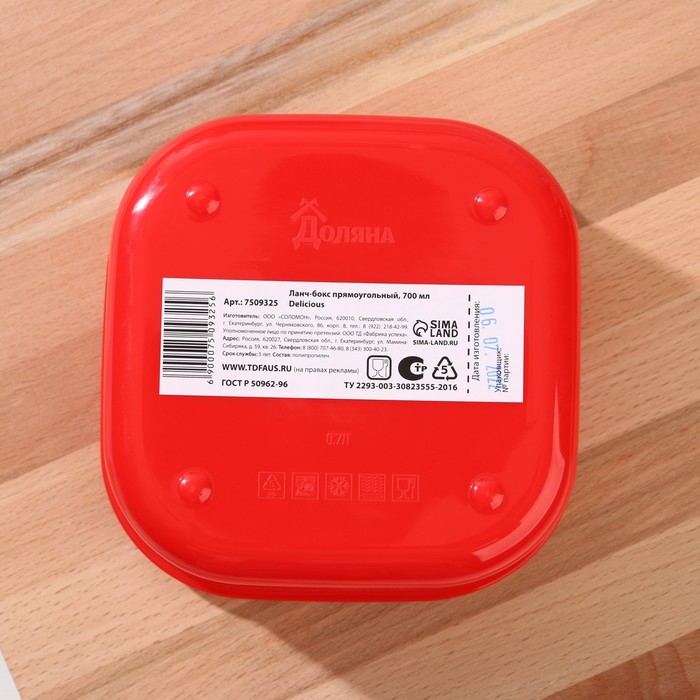 Размеры ланч-бокса составляют 6,5 см х 12,5 см х 12,5 см а его вес - всего 75 г. Квадратная форма и объем в 700 мл обеспечивают достаточно места для хранения различных видов пищи, делая его идеальным для обеда или перекуса.