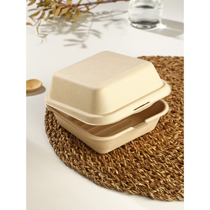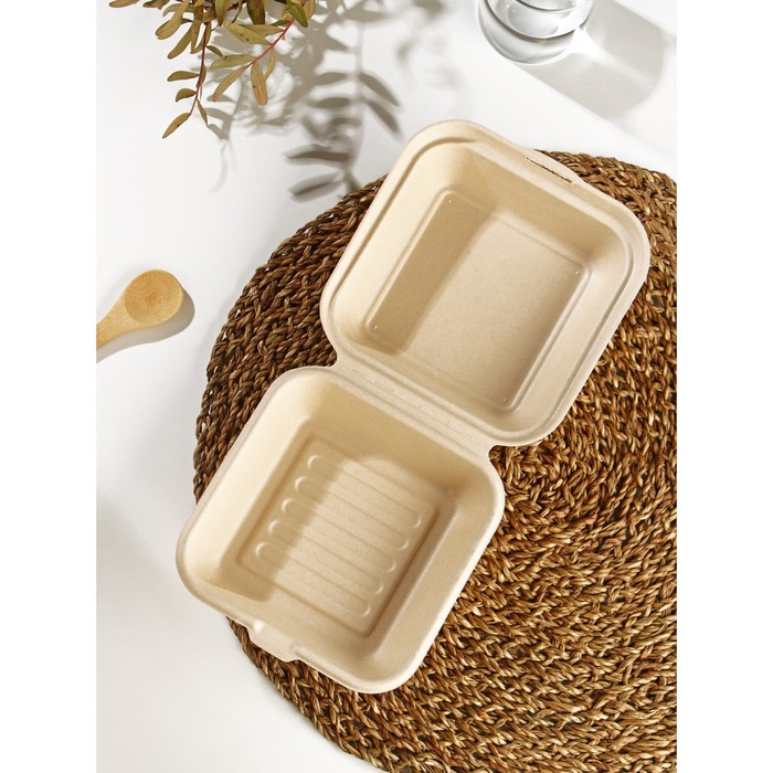 Представляем универсальный и экологически чистый ланч-бокс для бенто-торта и бургера от бренда Доляна. Этот контейнер выполнен из сахарного тростника, что делает его полностью биоразлагаемым и безопасным для окружающей среды.