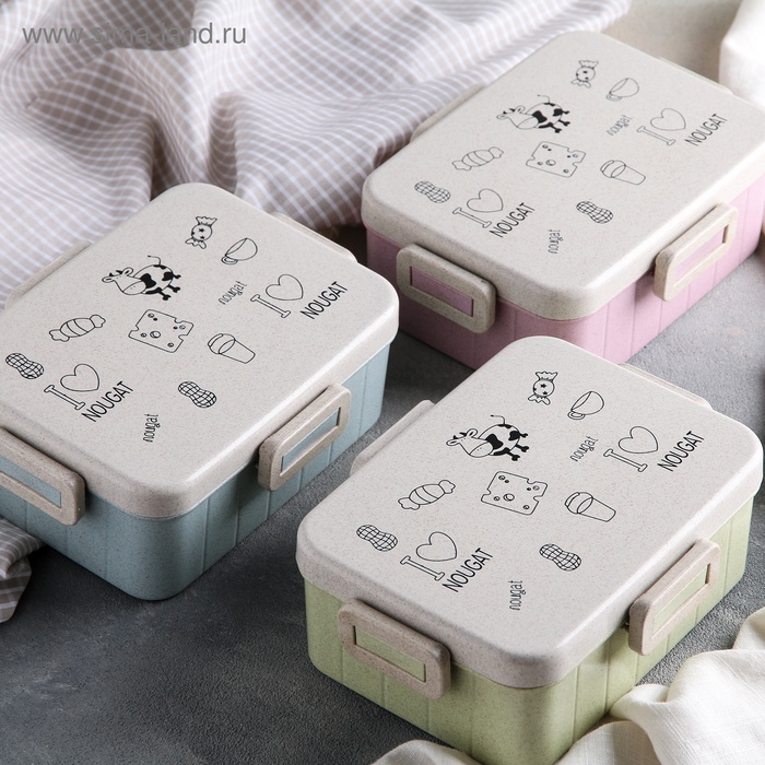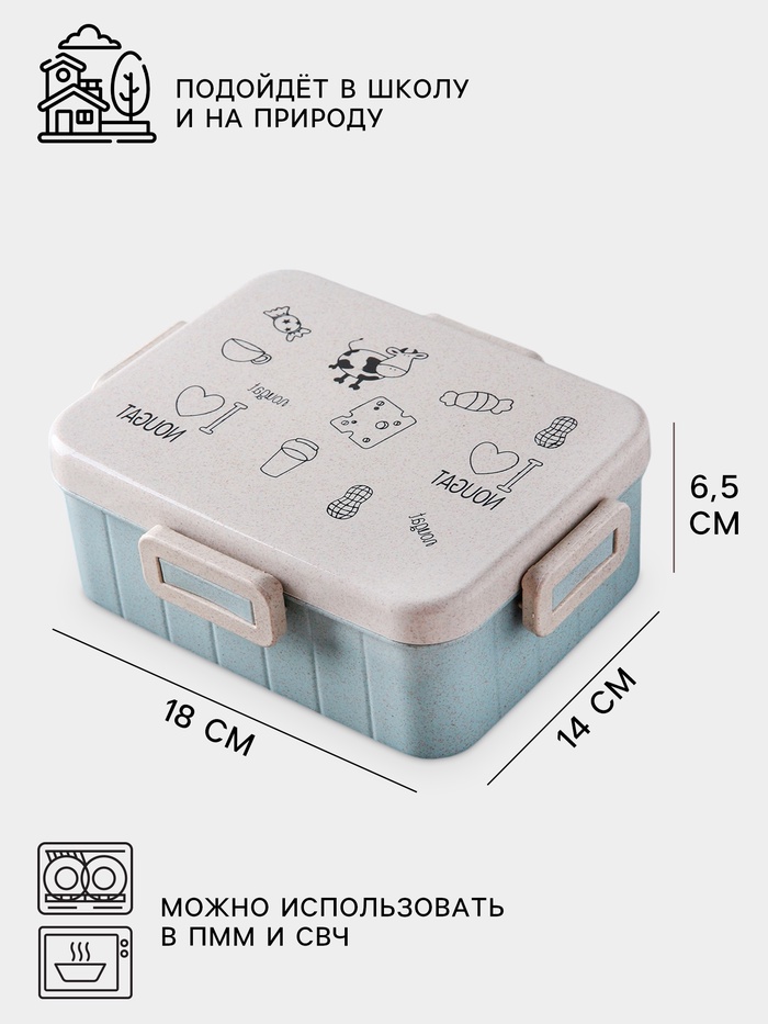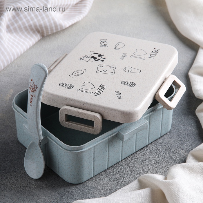 Ланч-бокс для еды с ложкой Доляна «Люблю вкусняшки», 1 л, в школу, 18×14×6.5 см, пшеничная солома, МИКС