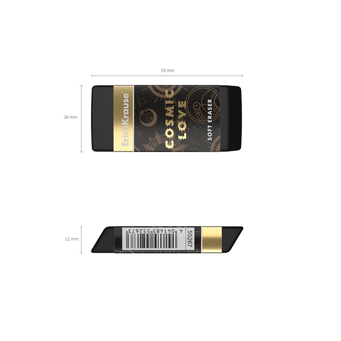 Мягкий ластик классической формы из современного экологически чистого и гипоаллергенного материала термопластичной резины TPR с пониженным образованием крошек (Dust free) в фирменной картонной обертке.