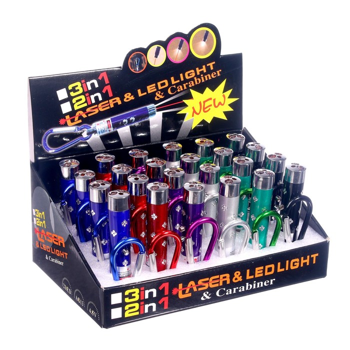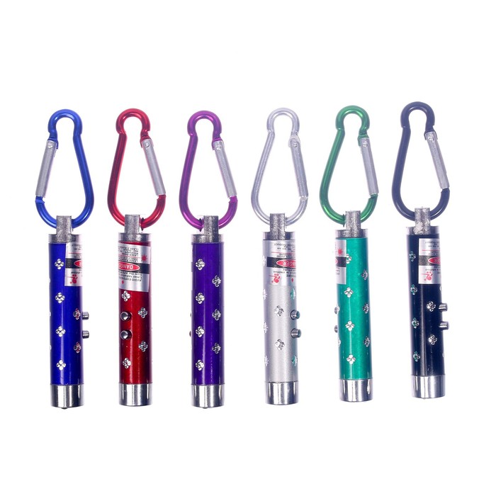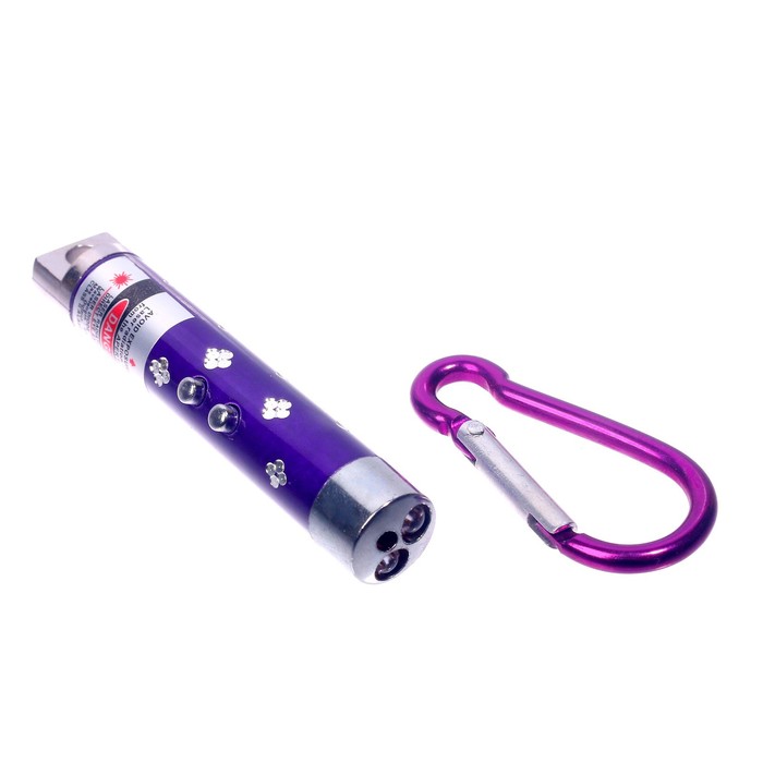 - У лазера есть карабин, с помощью которого игрушку можно использовать в качестве брелока и прикрепить к ключам или сумке.