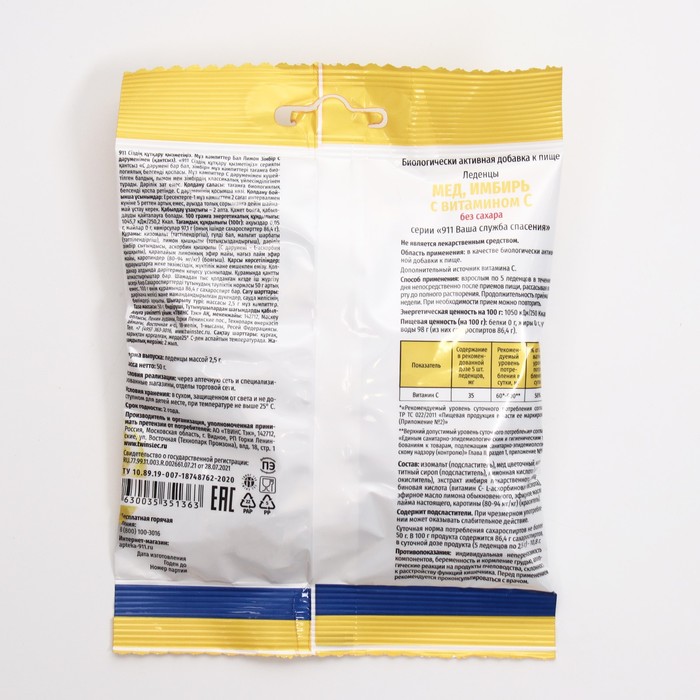 Леденцы "911" без сахара, мед, масло лимона, имбирь обладают антисептическими свойствами способствуют повышению иммунитета.