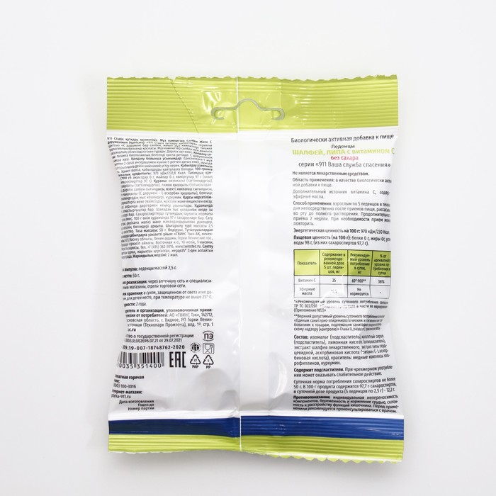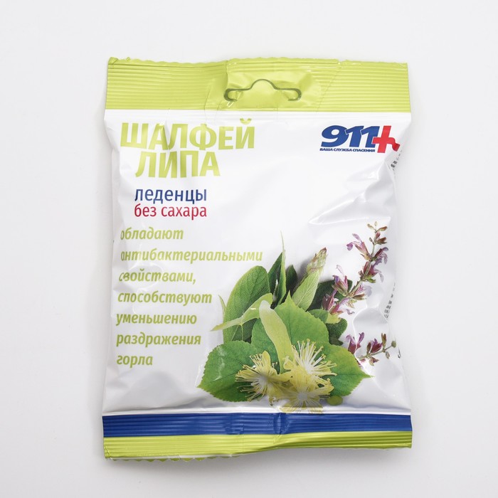 Леденцы "911" без сахара, шалфей, липа, витамин С обладают антибактериальными свойствами, уменьшают раздражение в горле.