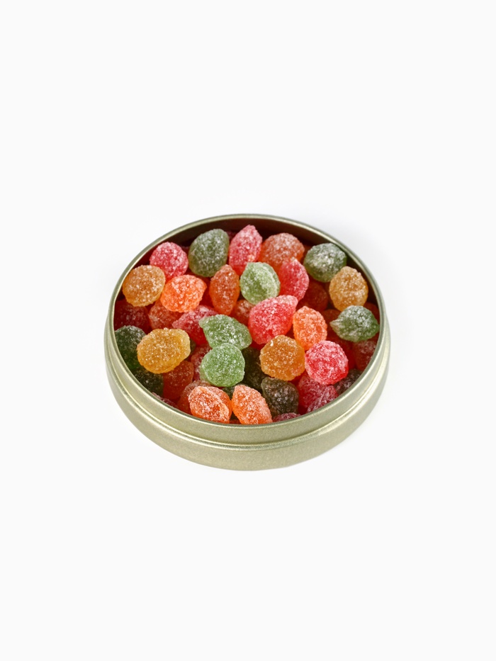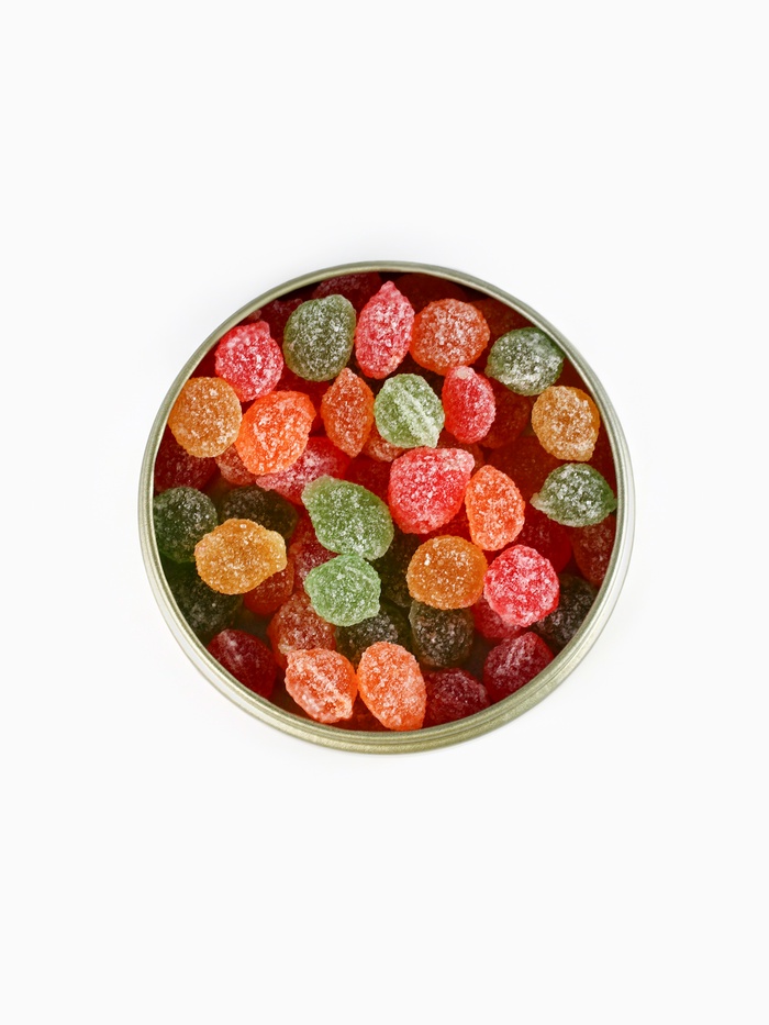 Состав: сахар-песок, патока крахмальная, регулятор кислотности –кислота лимонная, ароматизатор натуральный фруктовый,натуральные пищевые красители – лютеин Е161(b), бета-каротин Е160a, хлорофиллин Е141.