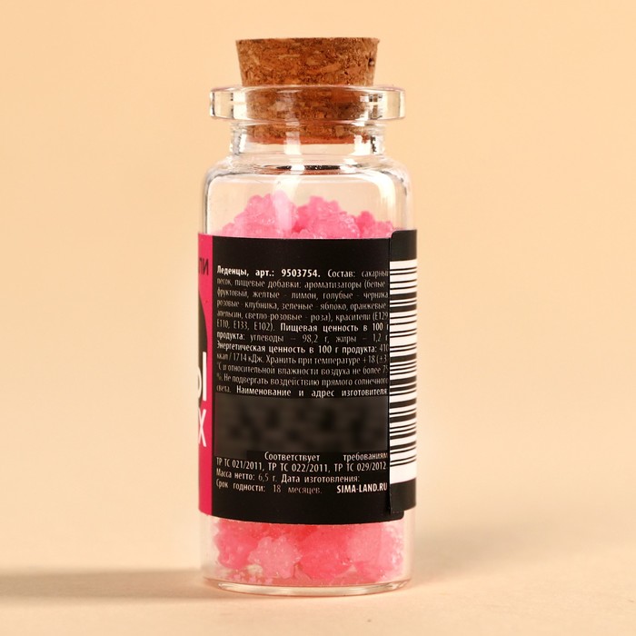 Состав: сахарный песок, пищевые добавки: ароматизаторы (белые фруктовый, желтые - лимон, голубые - черника, розовые - клубника, зеленые - яблоко, оранжевые - апельсин, светло-розовые - роза), красители (Е129, Е110, Е133, Е102).