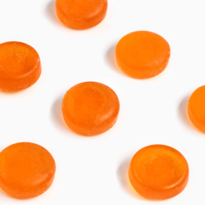 Состав: сахар, патока крахмальная карамельная, регулятор кислотности - лимонная кислота, ароматизатор "Апельсин", краситель - бета-каротин.