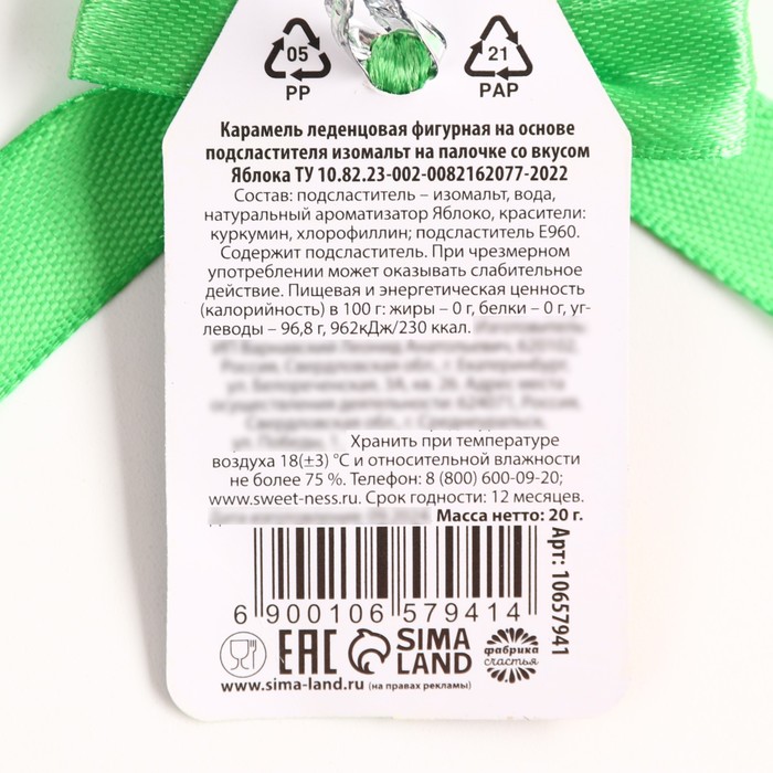 Состав: подсластитель - изомальт, вода, натуральный ароматизатор Яблоко, красители: куркумин, хлорофиллин; подсластитель Е960.