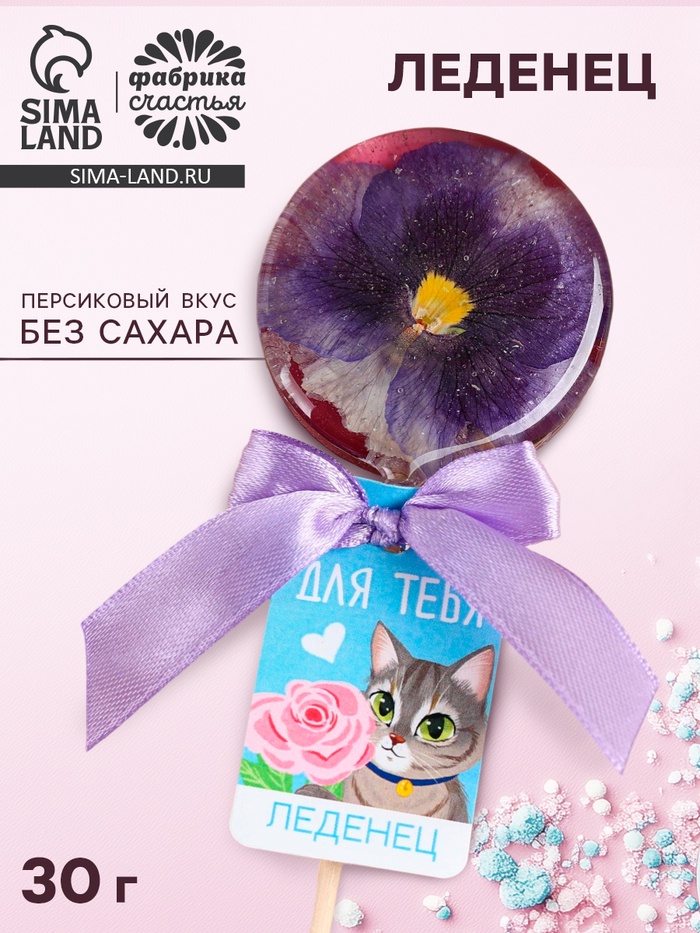 Состав: подсластитель - изомальт, вода, натуральный ароматизатор Персик тип, обезвоженные цветы анютины глазки, натуральный краситель куркумин, экстракт стевии.