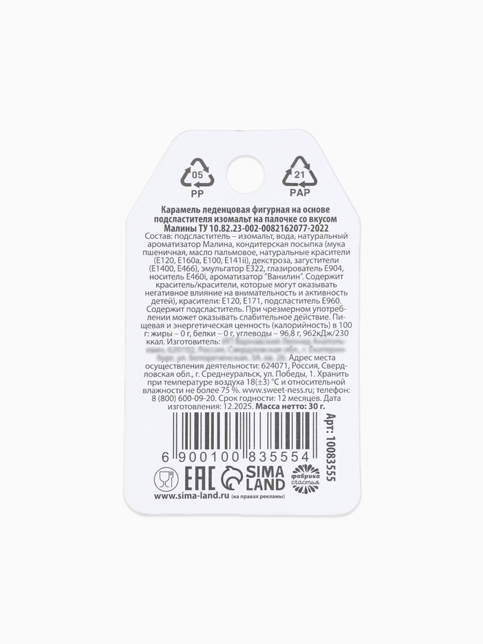 Состав: подсластитель - изомальт, вода, регулятор кислотности - лимонная кислота, натуральный ароматизатор "малина", кондитерская посыпка (сахар, мука рисовая, масло пальмовое, носитель (Е1422), декстроза, загустители (Е415, Е466), эмульгатор (лецитин соевый), глазирователь (шеллак), красители (Е102, Е104, Е120, Е124, Е133), ароматизатор "Ванилин".