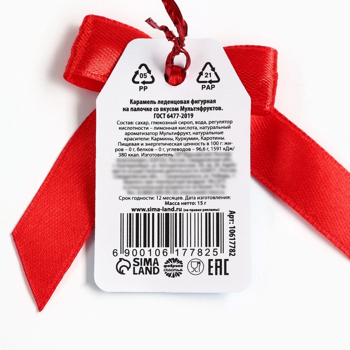 Состав: сахар, глюкозный сироп, вода, регулятор кислотности - кислота лимонная, натуральный ароматизатор Мультифрукт, натуральные красители: Кармины, Каротины, Куркумин. Пищевая ценность в 100 г: жиры - 0 г, белки - 0 г, углеводы - 96,6 г. Энергетическая ценность 1591 кДж/380 ккал.
