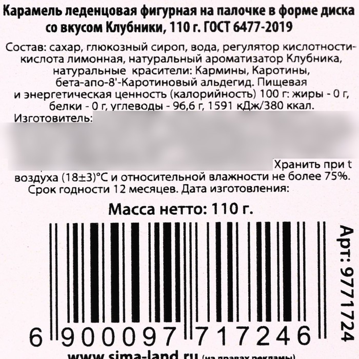 Состав: сахар, глюкозный сироп, вода, регулятор кислотности-кислота лимонная, натуральный ароматизатор Клубника, натуральные красители: Кармины, Каротины, бета-апо-8`-Каротиновый альдегид.