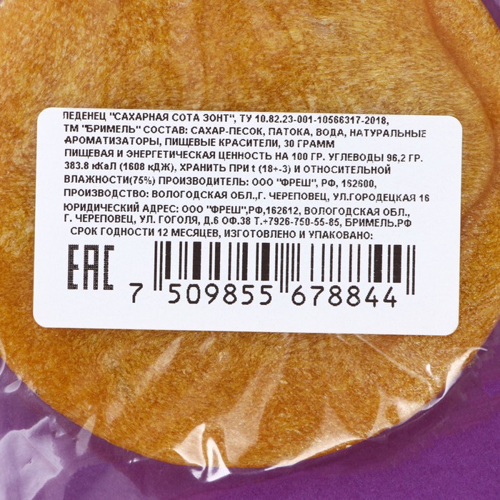 Леденец «Сахарные соты»: игра в кальмара — это сладкое угощение, вдохновленное популярным корейским сериалом «Игра в кальмара». Упаковка весом 30 г предлагает уникальный вкус и интересный дизайн, который стал настоящим хитом среди поклонников сериала.