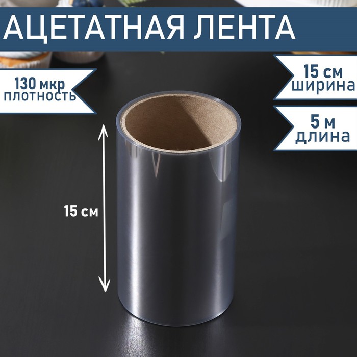 Лента ацетатная для обтяжки тортов Доляна, 130 мкр, 150 мм×5 м, прозрачная