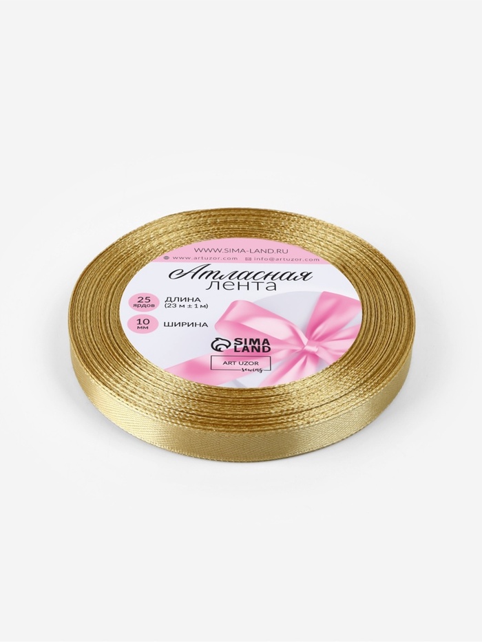 Лента атласная, 10 мм, 23±1 м, цвет золотой №204