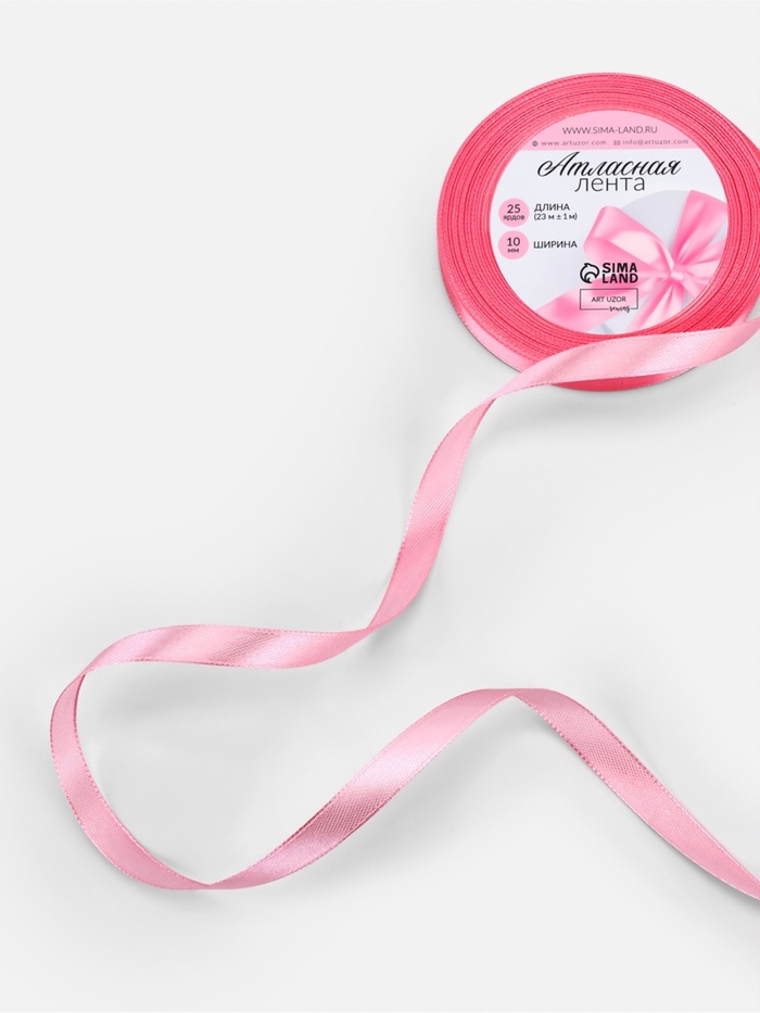 Лента атласная, 10 мм, 23±1 м, нежно-розовая