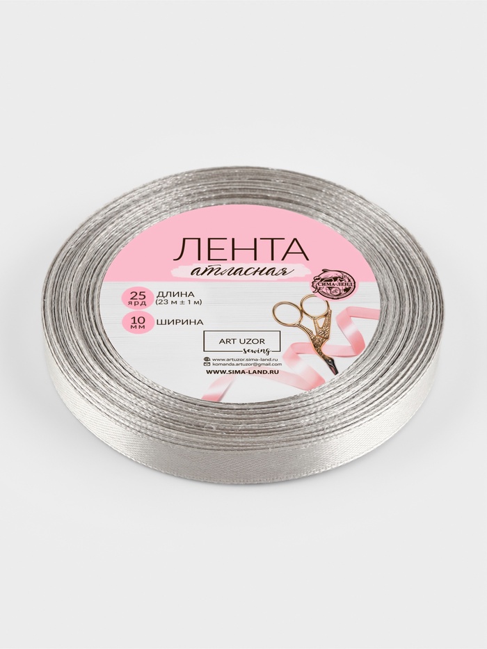 Светло-серая атласная лента шириной 10 мм и длиной 23 м вносит изысканность в каждую деталь вашего проекта. Сплетение полиэстера с атласом делает её гладкой и блестящей, подчеркивая элегантность любого использования. Этот многофункциональный материал подойдёт для шитья, упаковки подарков, создания декоративных элементов и украшений.