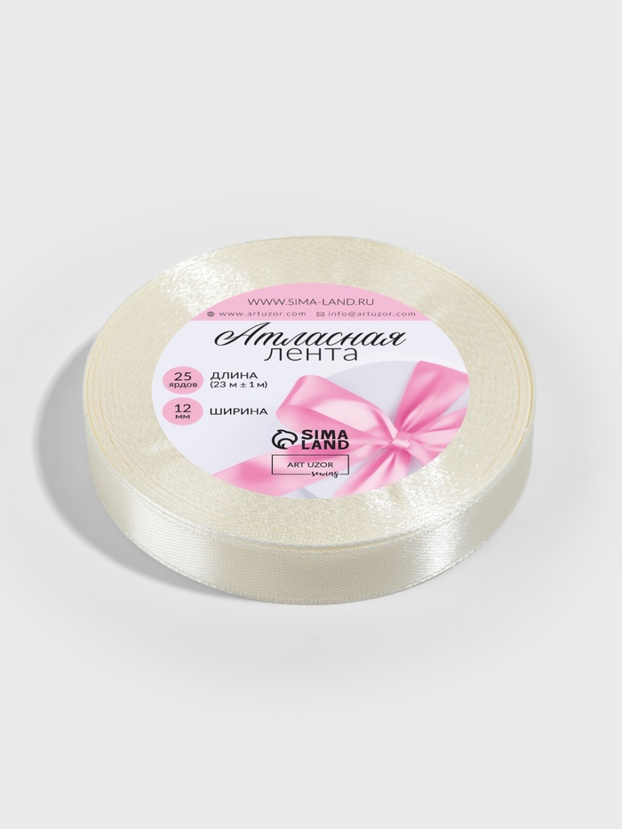 Лента атласная, 12 мм × 23 ± 1 м, цвет сливочный №02