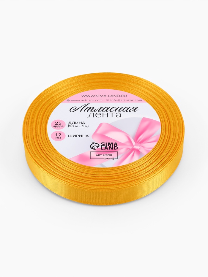 Лента атласная, 12 мм × 23 ± 1 м, цвет солнечный №16