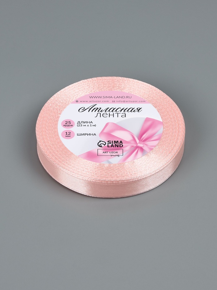 Лента атласная, 12 мм, 23±1 м, пастельно-розовая